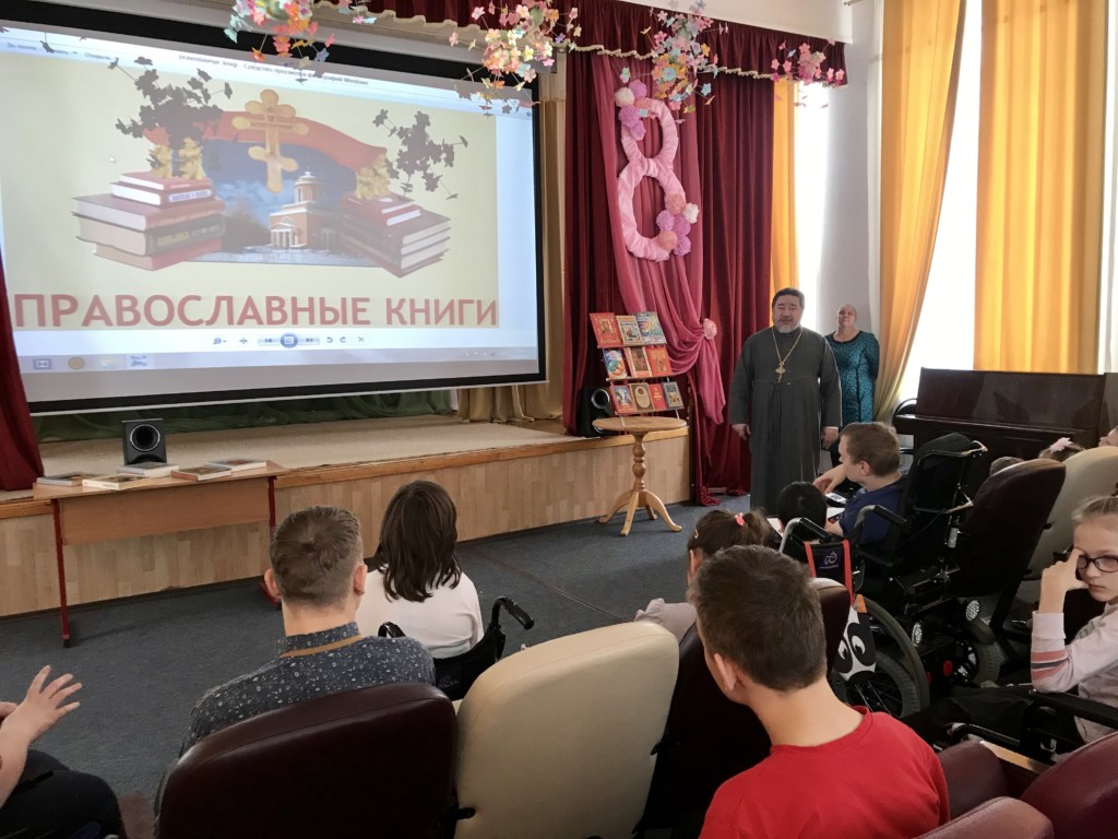 9 марта 2019 года, в рамках празднования Дня Православной Книги, настоятель Казанского храма г. Дмитрова — протоиерей Владимир Попков посетил дом-интернат «Возрождение» для детей со слабой опорно-двигательной системой, где провел встречу с детьми на тему: «Значение книги в жизни человека и общества». Беседа прошла в форме диалога. Воспитанники интерната рассказали о своих любимых книгах, и о том, какое место книга занимает в их жизни. В завершении встречи, отец Владимир рассказал о новых книгах православной тематики, выпущенных специально для молодежи и юношества, а также ответил на интересовавшие вопросы собравшихся.