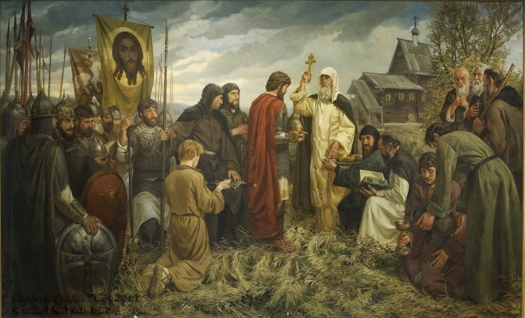 Преподобный Сергий благословил князя Дмитрия Донского на битву против полчищ Мамая, предсказав победу русскому воинству: «Без всякого сомнения, господине, со дерзновением пойди противу свирепства их, никакоже ужасайтеся, всяко поможет ти Бог».